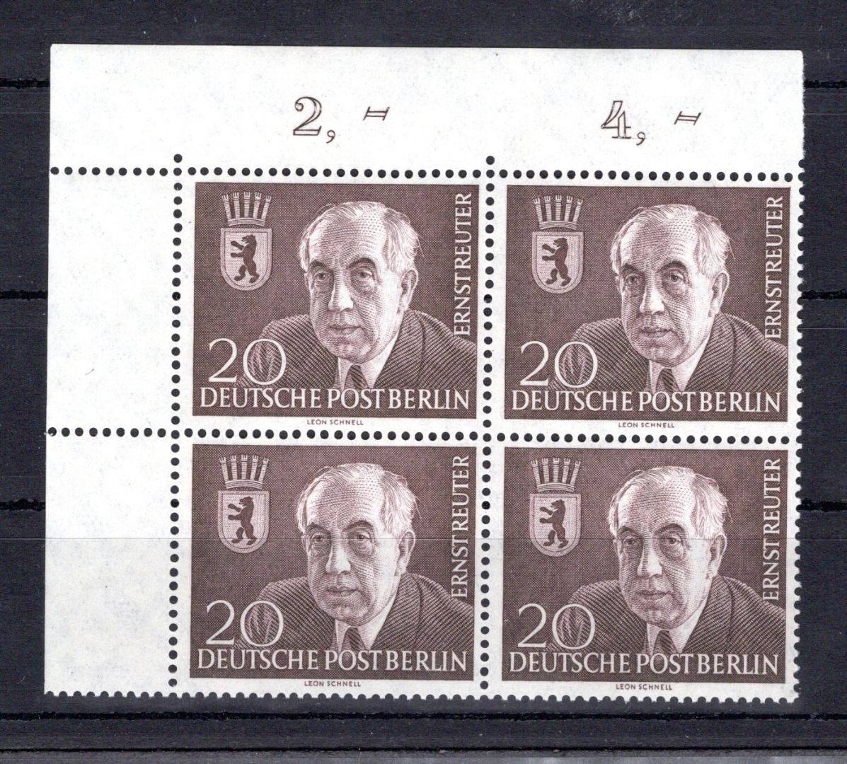 4er Block Eckrand ol, ungefaltet