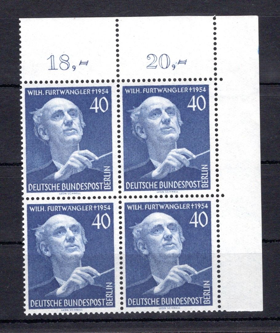Berlin MiNr. 128 postfrisch 4er Block Eckrand or, ungefaltet