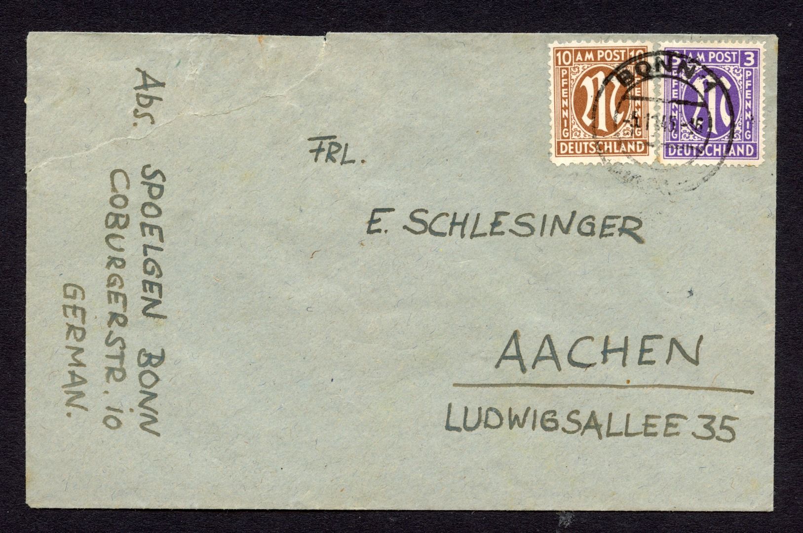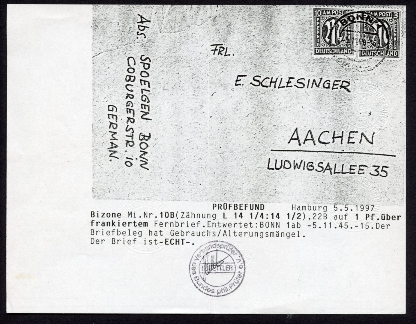 Der Brief ist überfrankiert und hat oben links eine Beschädigung!