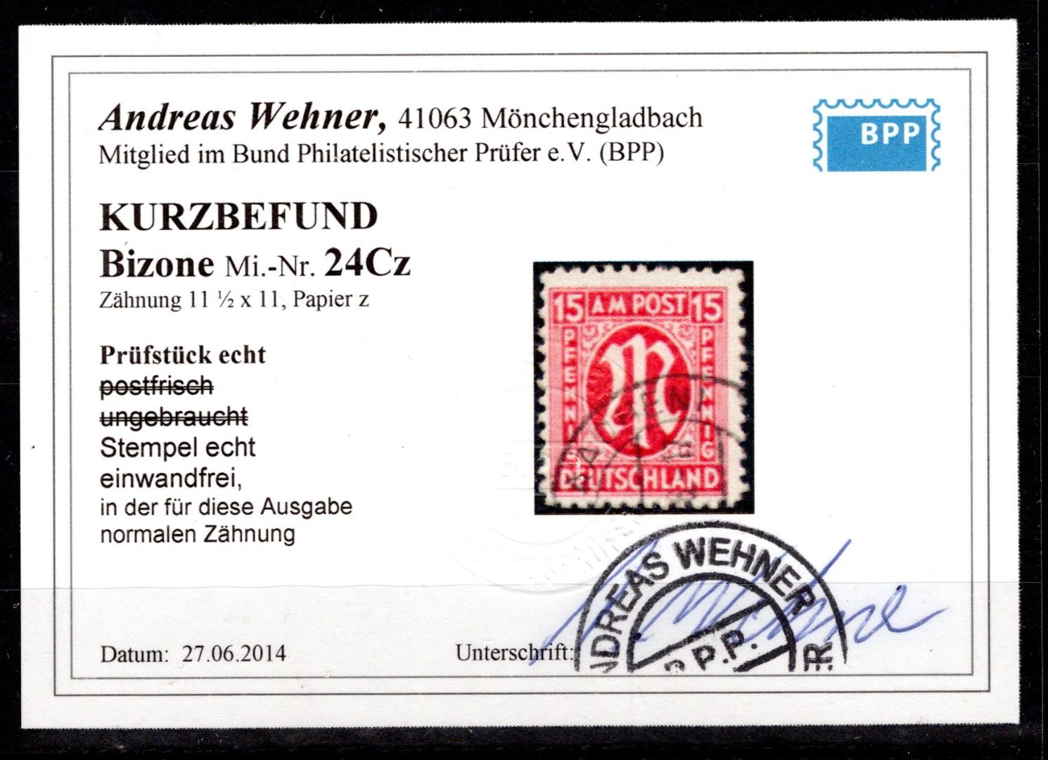 Bi-Zone MiNr. 24 Cz gestempelt Kurzbefund Wehner