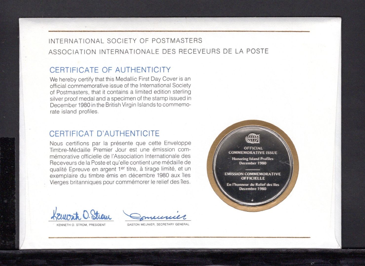 Numisbrief mit einer Medaille aus Sterling Silber PP, 39 mm, ca. 20 Gramm