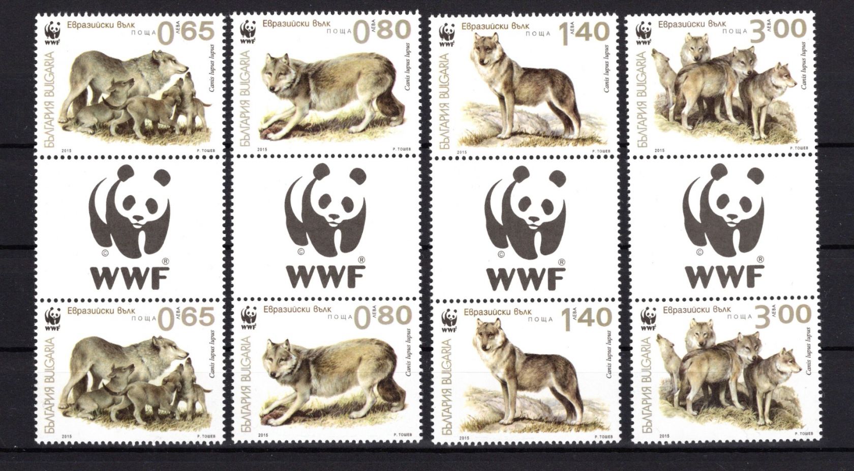 Bulgarien WWF MiNr. 5226-5229 Wölfe - Zwischenstegpaare postfrisch Tiere