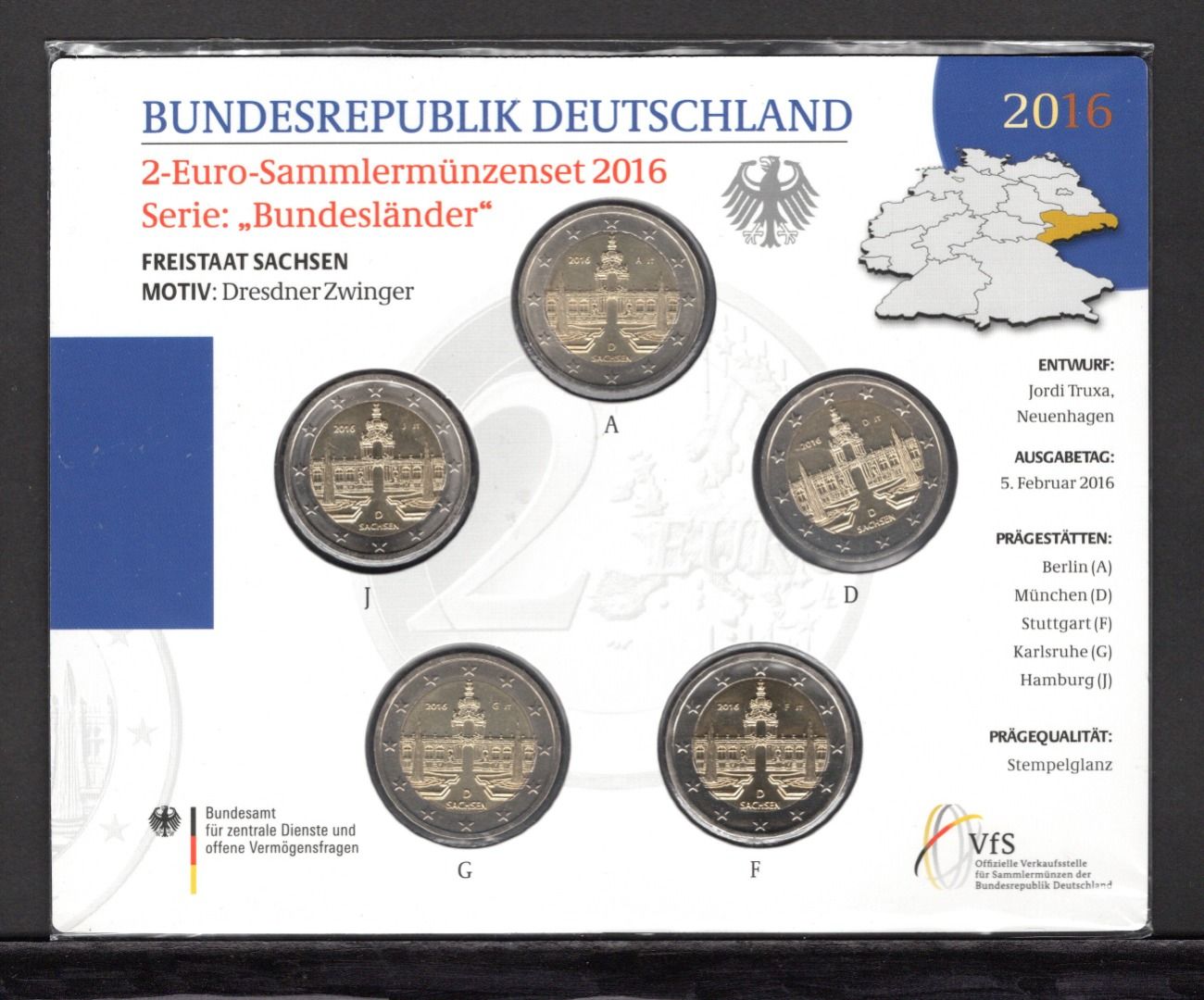 Bund 2016 2 Euro Gedenkmünzenset "Freistaat Sachsen", im Blister ST