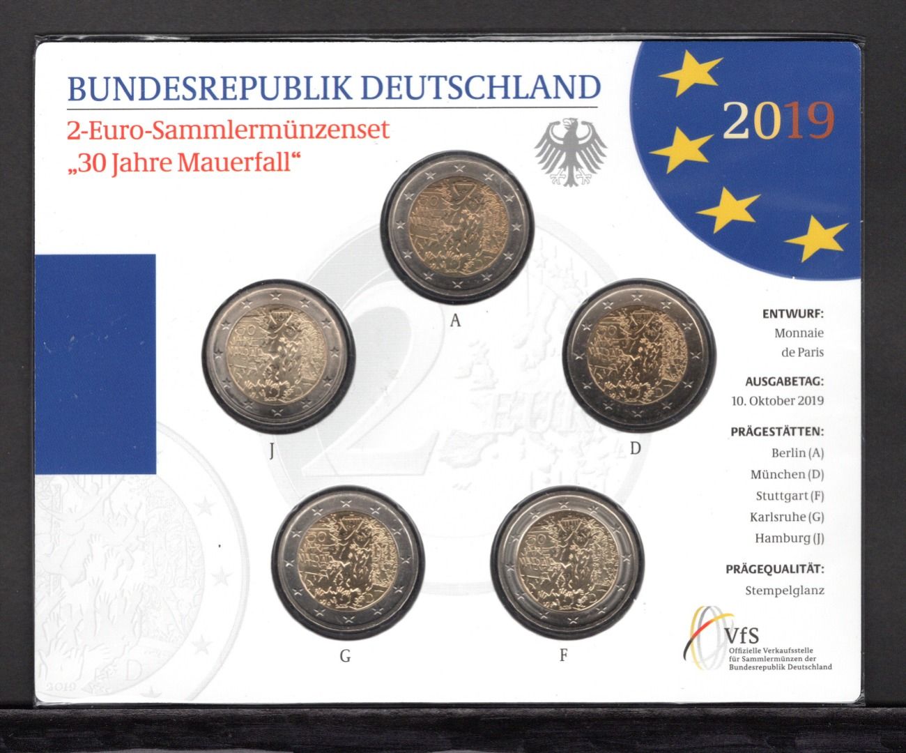 Bund 2019 2 Euro Gedenkmünzenset "Mauerfall", im Blister ST