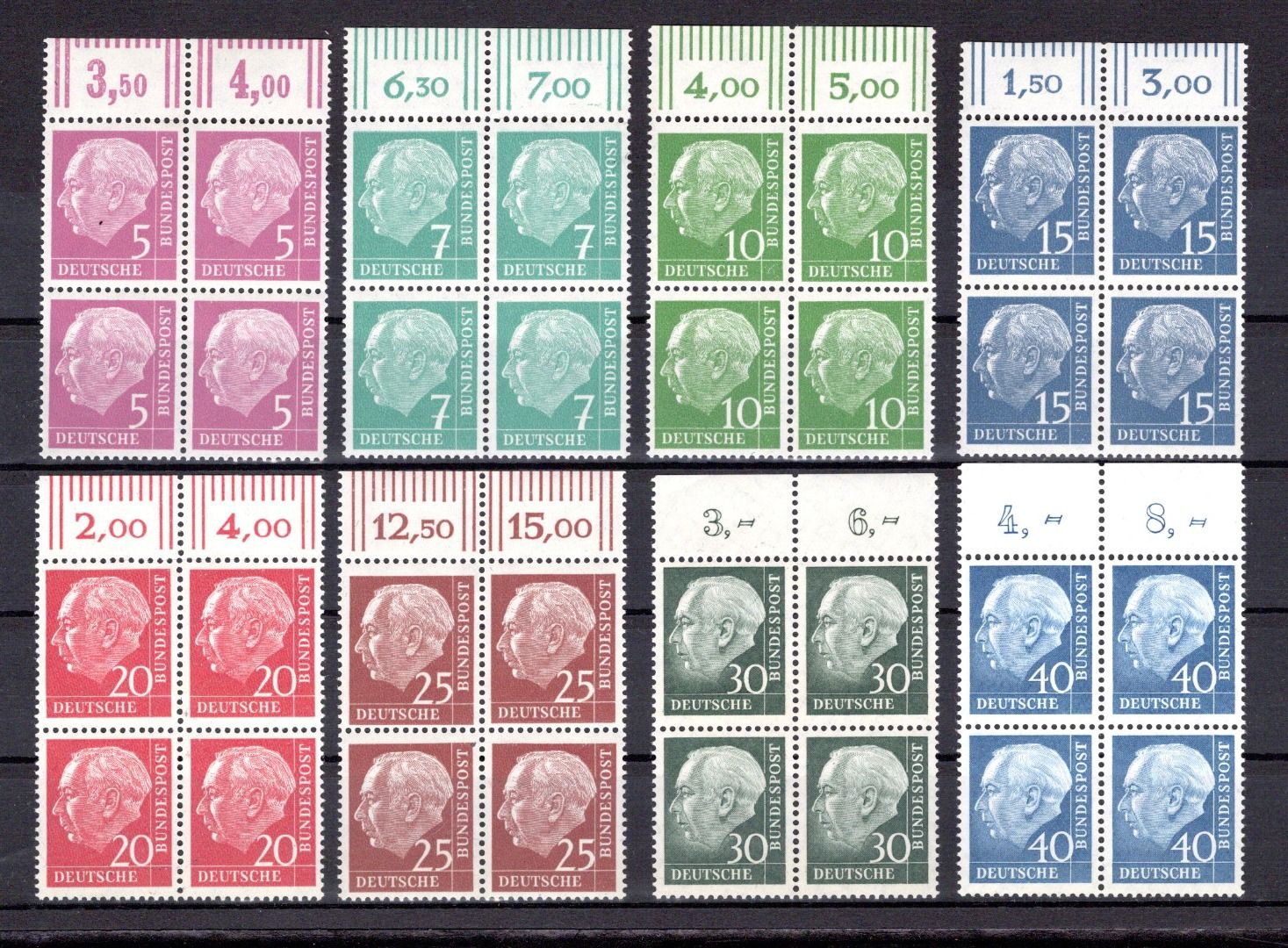 Bund Heuss Lumogen MiNr. 179 y ff postfrisch als 4er Blöcke Oberrand