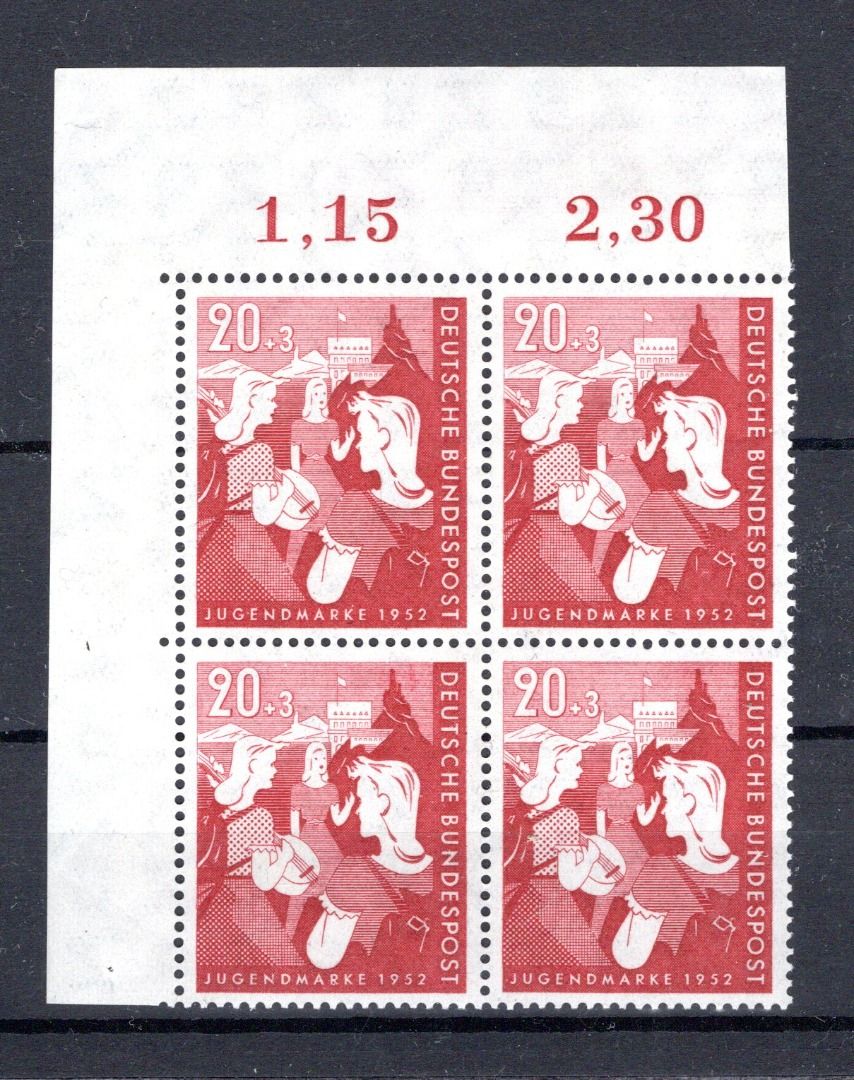 Bund MiNr. 154 postfrisch 4er Block Eckrand ol, ungefaltet