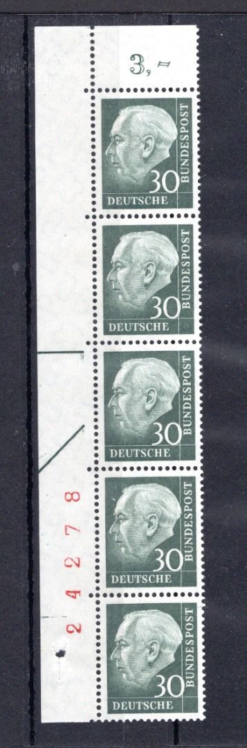 Bund MiNr. 259 Y postfrisch 5er Str. BZ-Nr. Steuerstriche, ungefaltet
