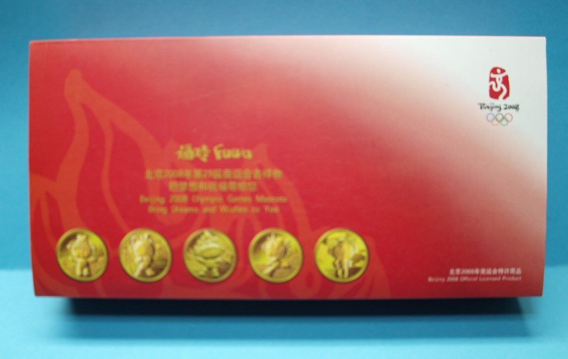 Maskottchen Medaillen Proof Set Olympische Spiele Peking 2008 in aufwendiger Box mit Zertifikat.
