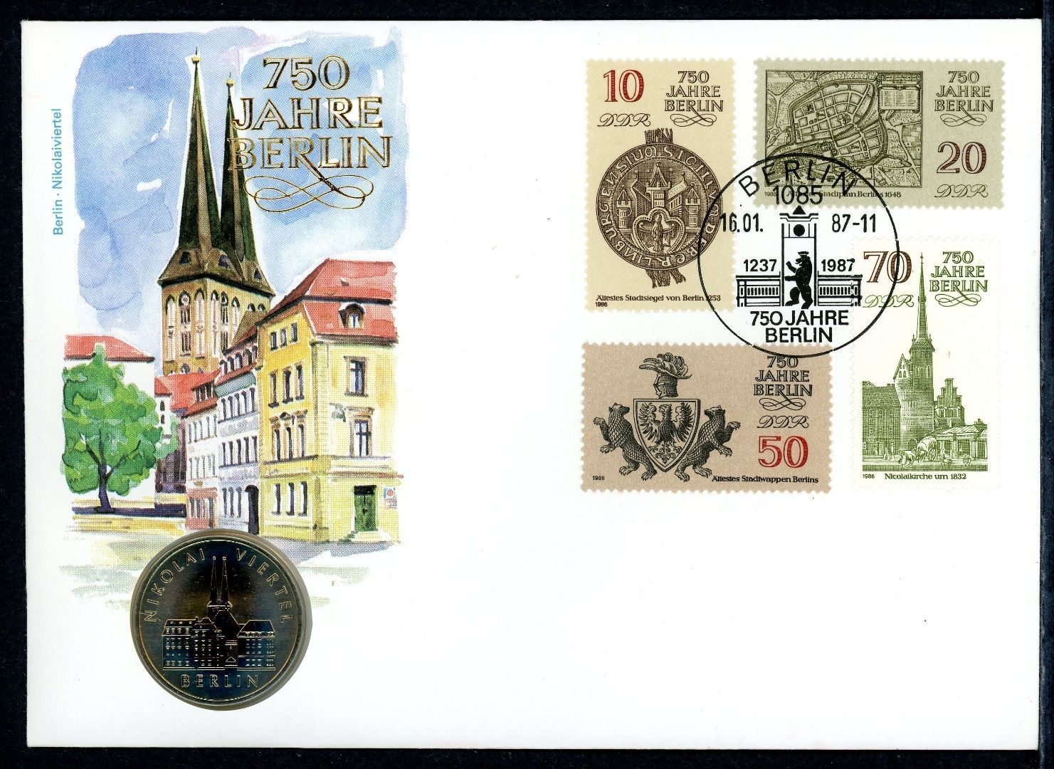 DDR 1987 Numisbrief 5 Mark Nikolaikirche - Worbes 43 ST