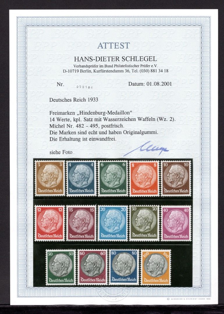 Deutsches Reich MiNr. 482-495 postfrisch Fotoattest Schlegel