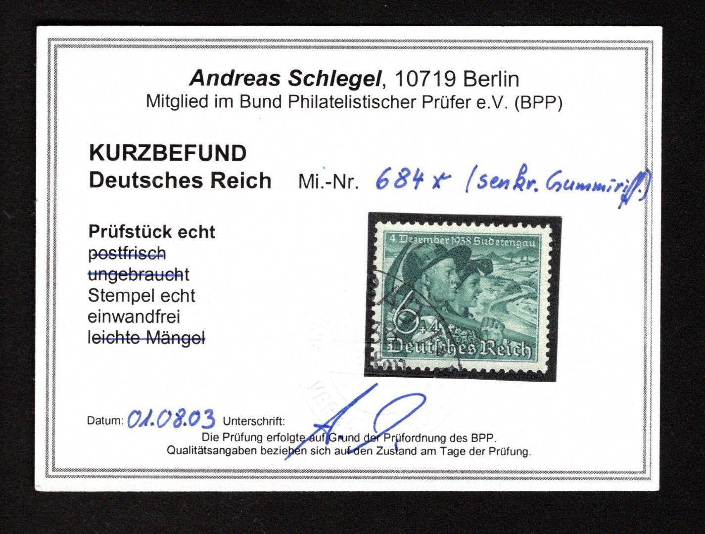 Deutsches Reich MiNr. 684 x Briefstück Kurzbefund Schlegel