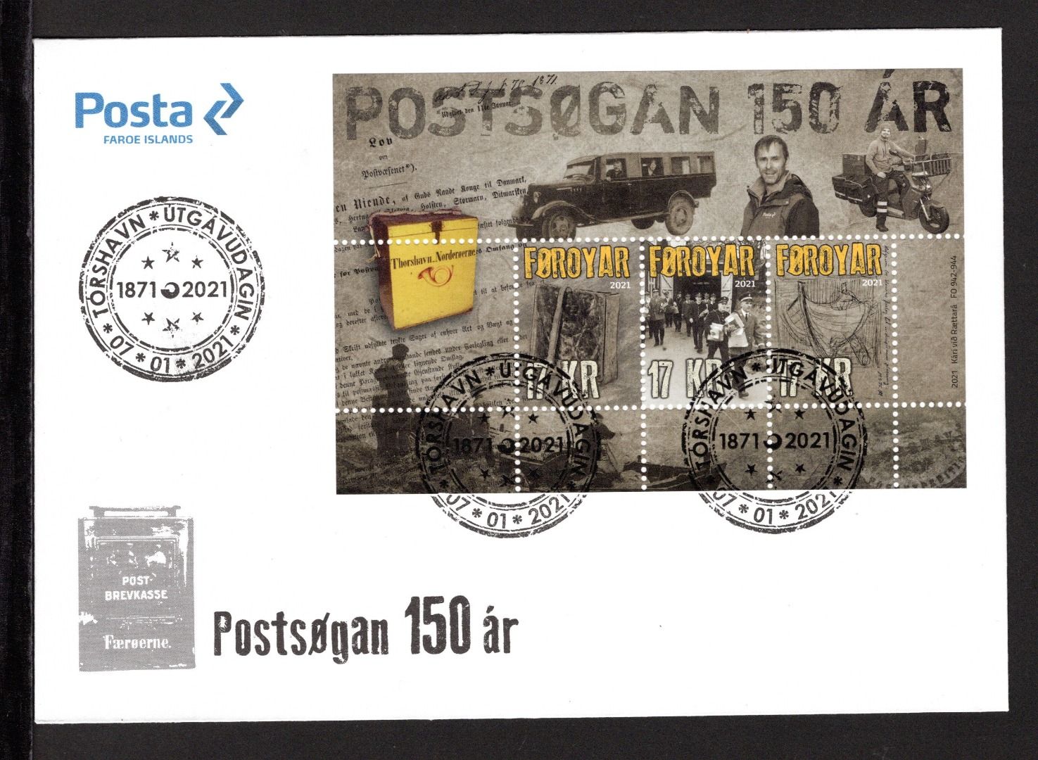 Färöer MiNr. Block 57 Ersttagsbriefe/ FDC 150 Jahre Post