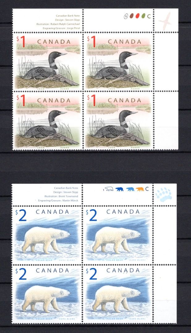 Kanada MiNr. 1725-1726 ER-Viererblöcke postfrisch Taucher Loon Eisbär
