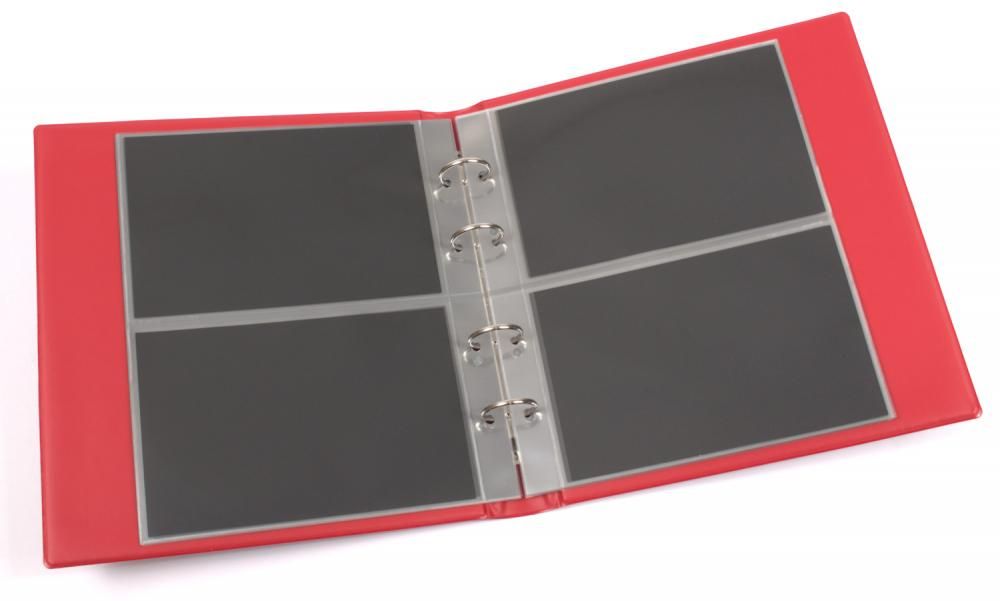 - Einsteckblätter aus glasklarer, weichmacherfreier Hartfolie mit eingesteckten schwarzen Kartonblättern, dadurch doppelseitig verwendbar.