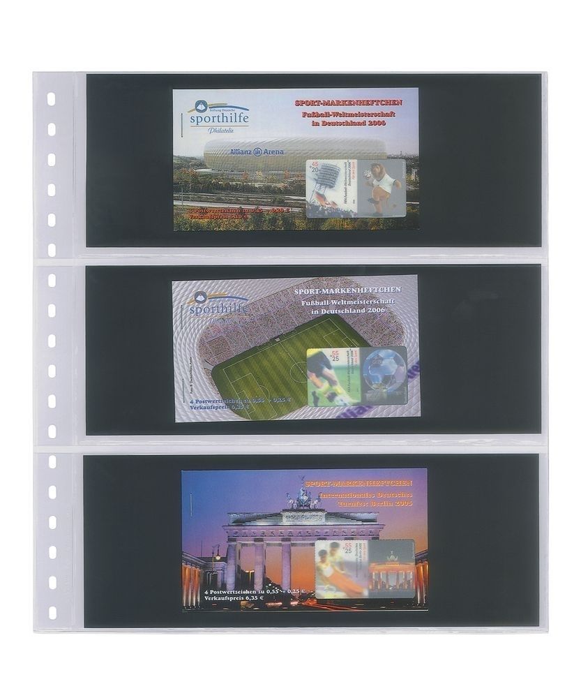 - Klarsichthülle mit 3 Streifen (90 mm), mit schwarzen Folien-Einlegestreifen.