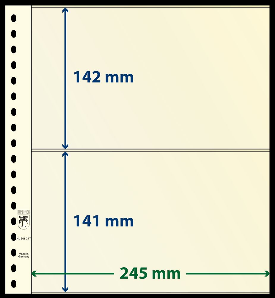 Jedes T-Blanko-Blatt besteht aus einem Kartonblatt und einer am linken Rand aufgeklebten Folienhülle. Die Briefmarken oder Belege werden in die Folien eingesteckt und dadurch beidseitig durch die Folientasche geschützt. Die Folienhülle ist durch ein spezielles Klebeverfahren am linken Rand fest mit dem Kartonblatt verbunden. Dies ermöglicht ein einfaches Umblättern. Hierdurch können die Vorder- und die Rückseite der Belege betrachtet werden, ohne diese aus der sicheren Folie entnehmen zu müssen. Dies ist ein typisches Merkmal des LINDNER-T Systems. Jedes T-Blanko-Blatt hat eine 18-Ring-Lochung, welches jederzeit einen sicheren Halt in allen LINDNER-Ringbindern mit 18-Ring-Mechanik gewährleistet.