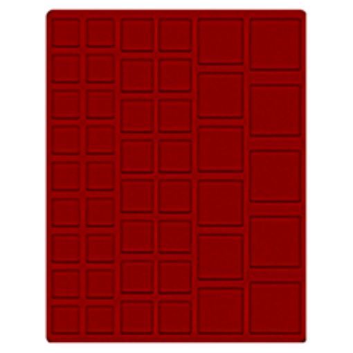 Dunkelrote Münzeinlage mit 45 rechteckigen Fächern.