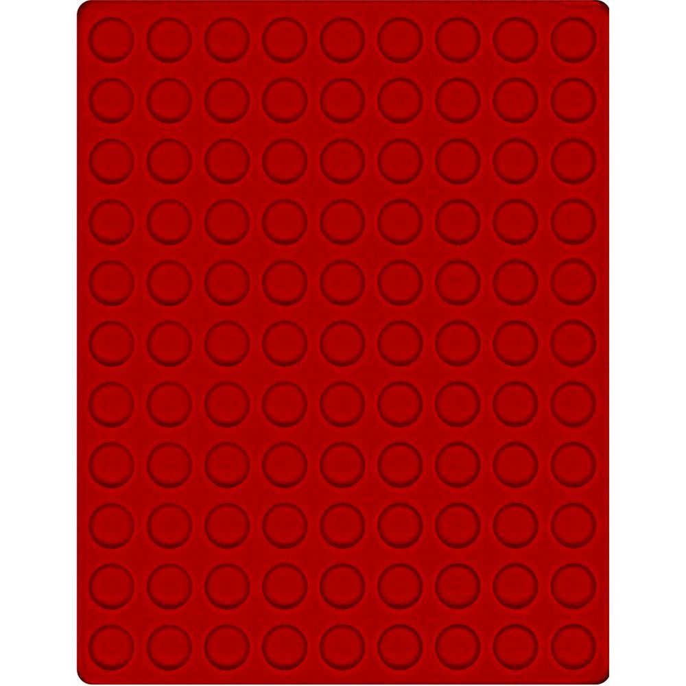 Hellrote Münzeinlage mit 99 runden Vertiefungen.