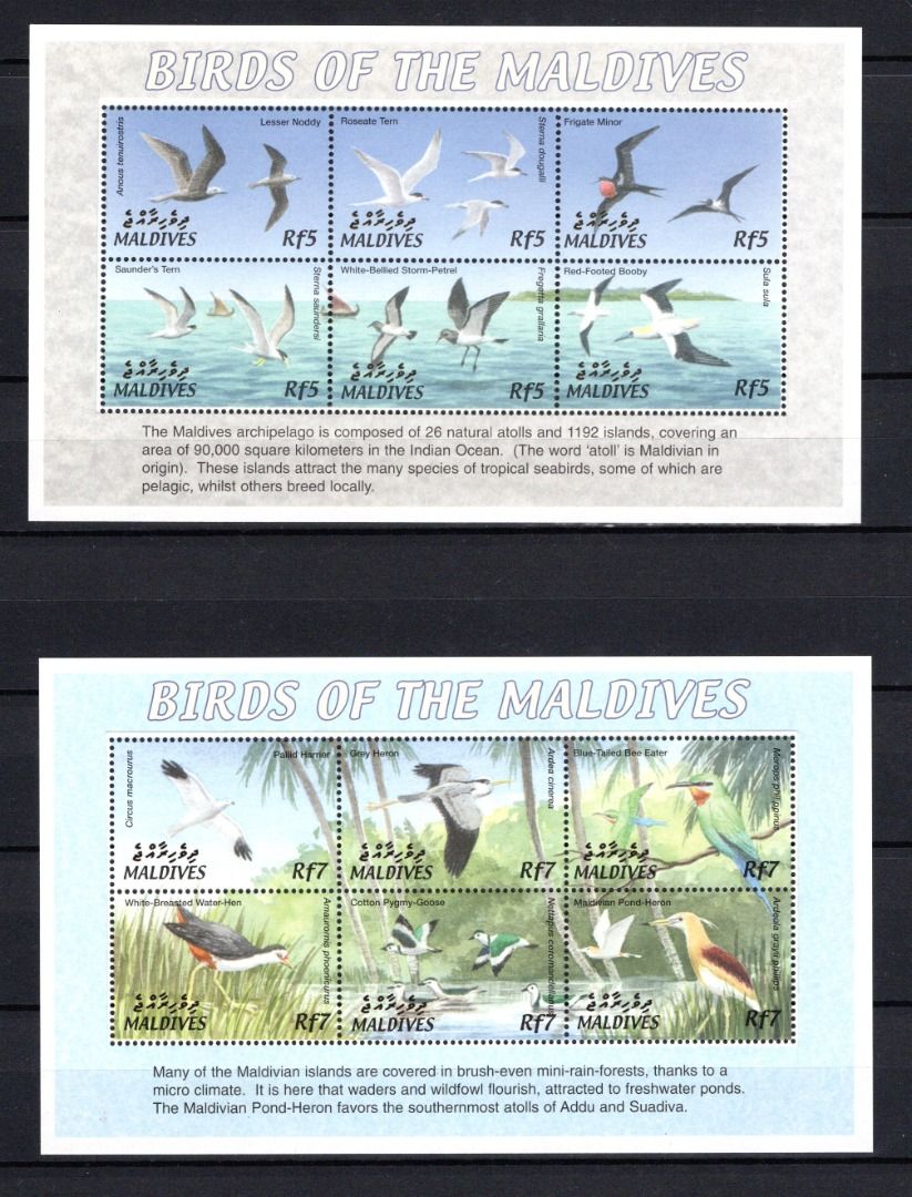 Zwei Zusammendruck-Kleinbogen: Birds of the Malidives laut Abbildung