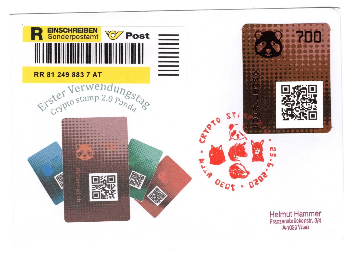 mit Aufgabeschein als Einschreiben, Ersttagssonderstempel WIEN 25.6.2020