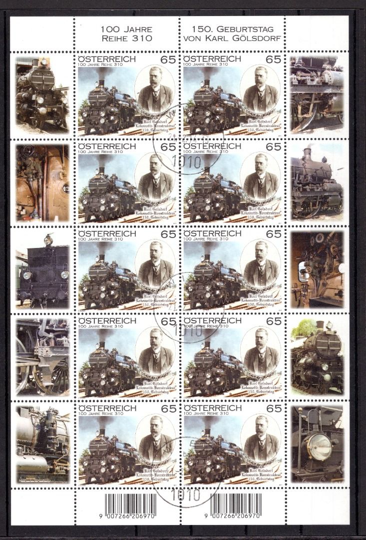 Österreich Kleinbogen MiNr. 2916 gestempelt Eisenbahn, Lokomotive
