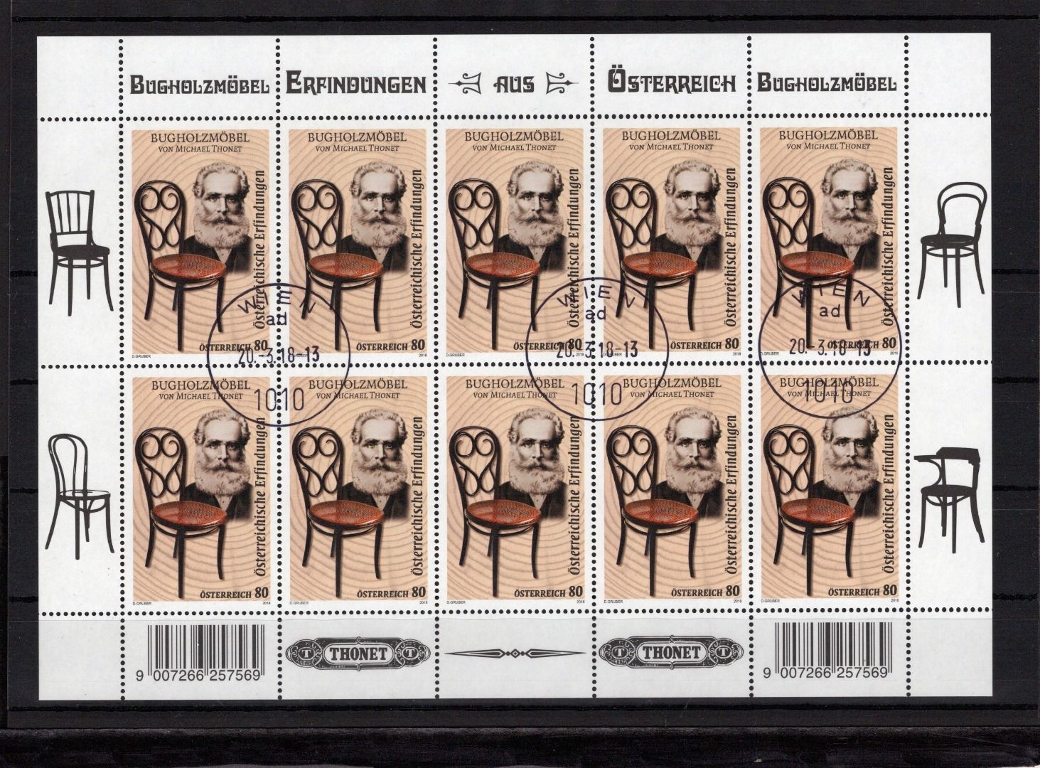 Österreich Kleinbogen MiNr. 3375 Versandstellenstempel Michael Thonet
