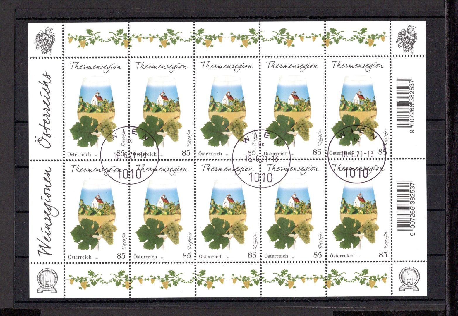 Österreich MiNr. 3588 gestempelt als Kleinbogen, Weinregionen