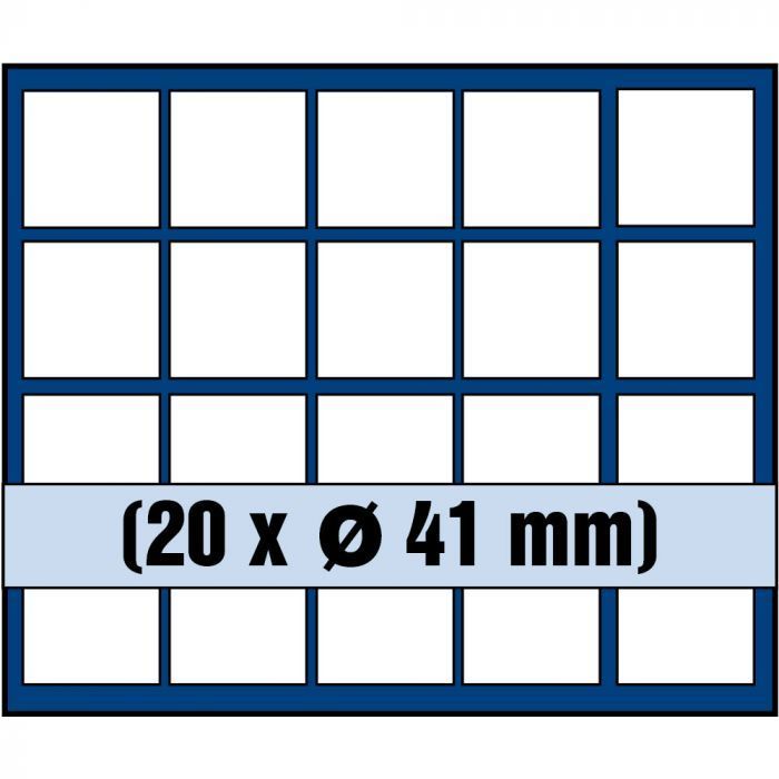 Die Münzeinsätze sind königsblau beflockt und mit runden und eckigen Fächern erhältlich. Auch für Münzen in Kapseln geeignet (die mm-Angaben sind die maximalen Fachgrößen für die Münze bzw. für die Kapsel).