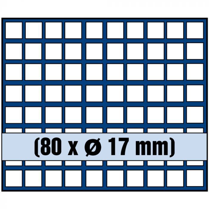 Für 80 Münzen bis zu 17 mm Ø, z.B. 1 Pfennig oder 1 Cent.