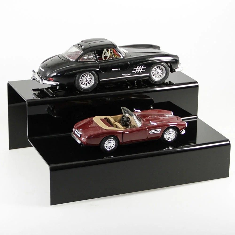 Elegante Präsentation Ihrer Modelle auf einer tiefglänzenden schwarzen Acryl-Glastreppe.