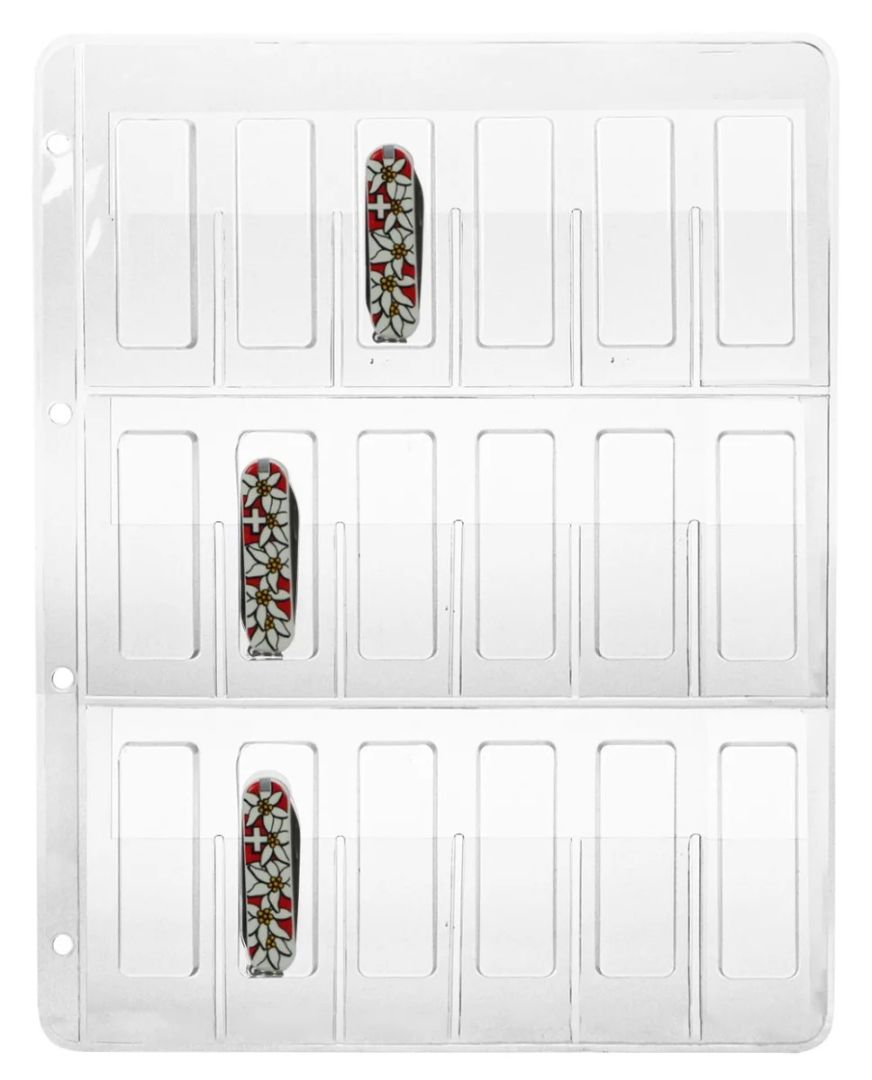 2 transparente Blisterblätter für je 18 Messer (58 mm lang).