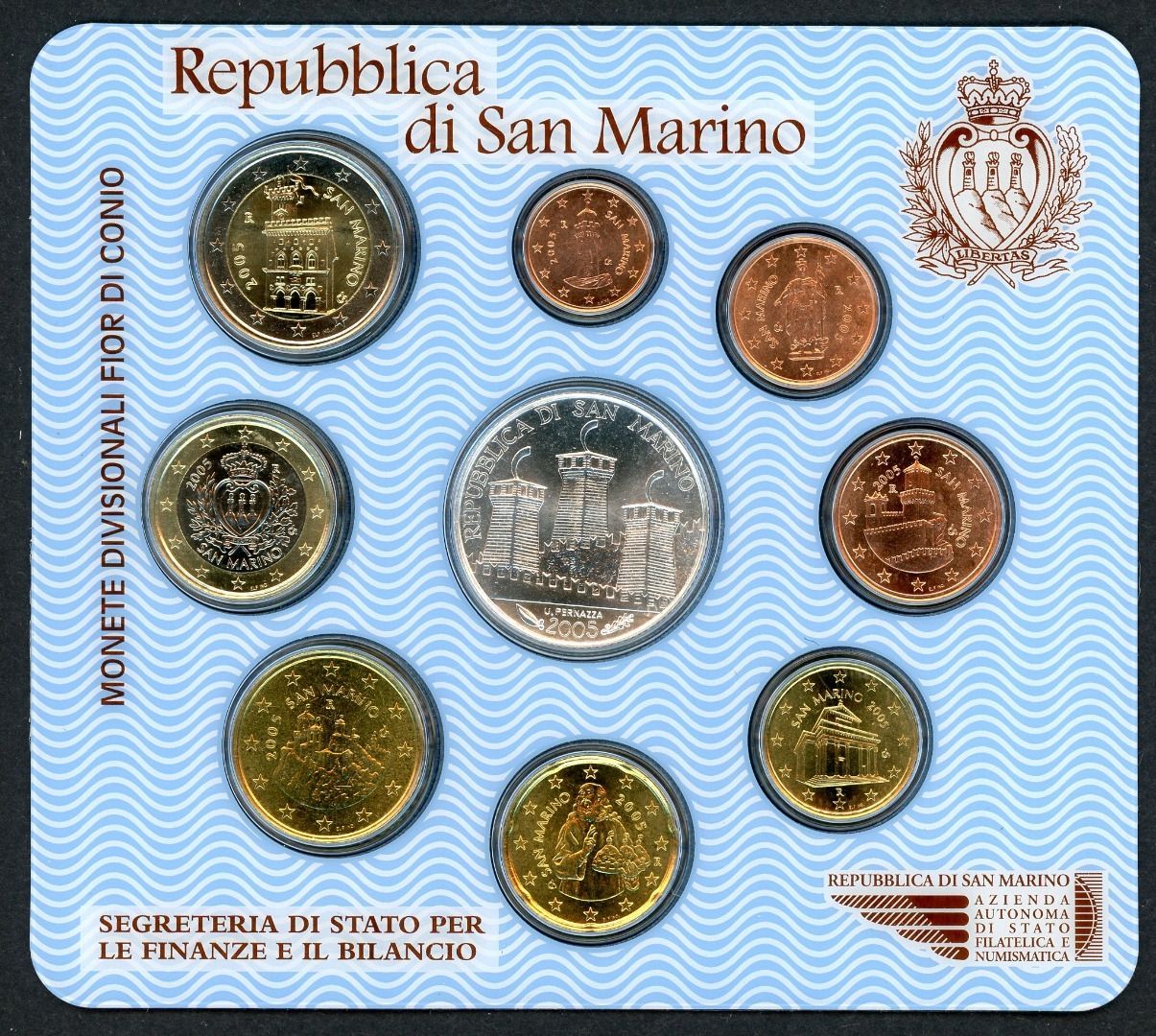 San Marino 2005 Kursmünzensatz/ KMS im Folder incl. 5 Euro Onofri ST