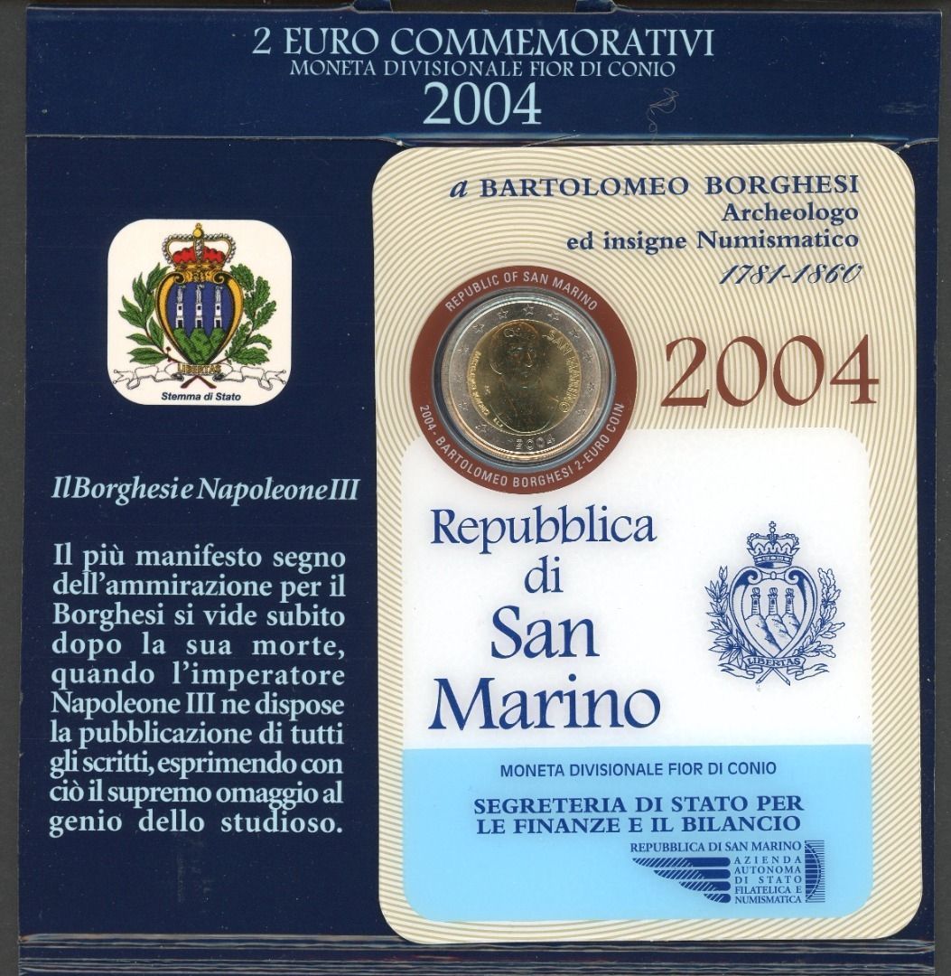 San Marino Coincard 2 Euro 2004 im Folder "Borghesi" ST