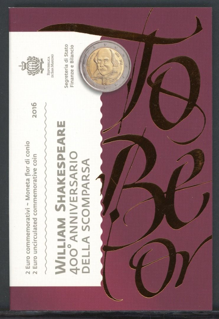 San Marino Coincard 2 Euro 2016 im Folder "Shakespeare" ST