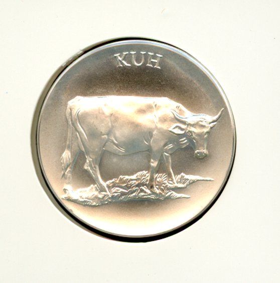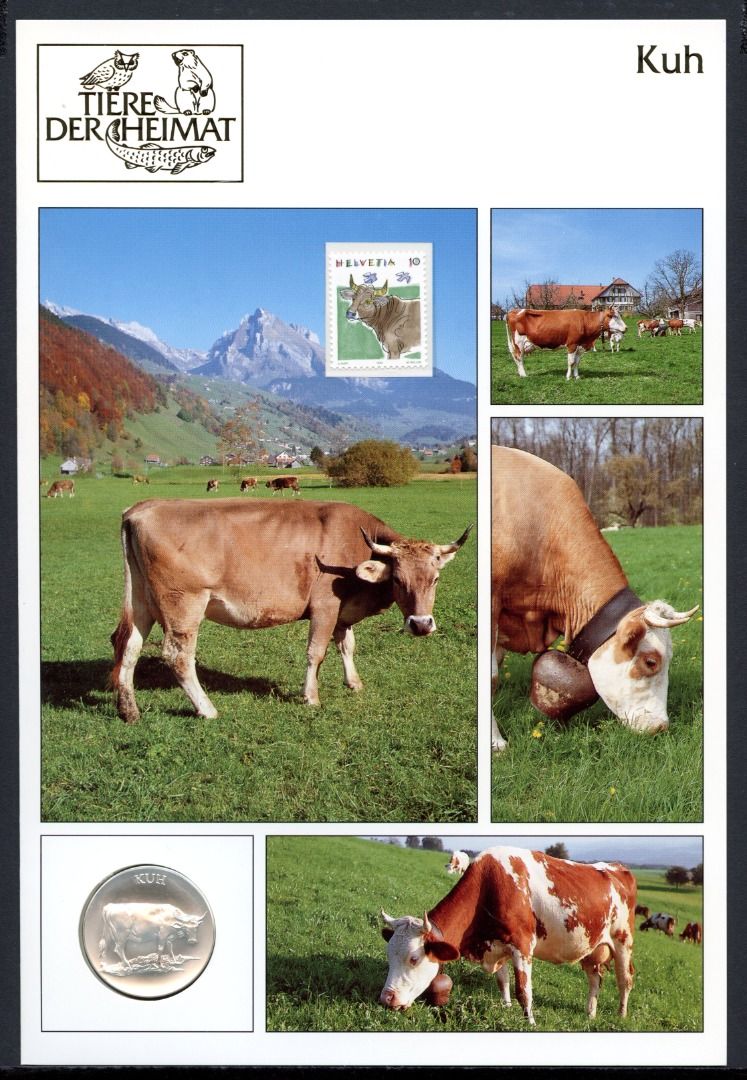 Schweiz Medaillenblatt Tiere der Heimat Kuh Medaille Feinsilber