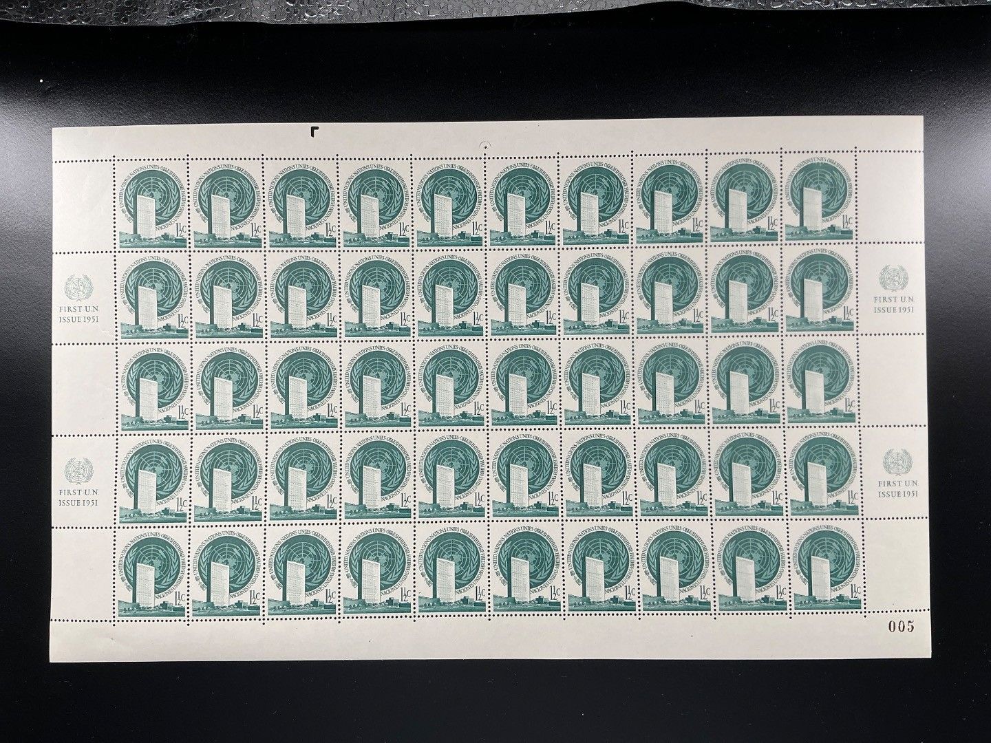 UNO New York 50er Bogen MiNr. 2 x postfrisch RZf CO I + RZf KN I