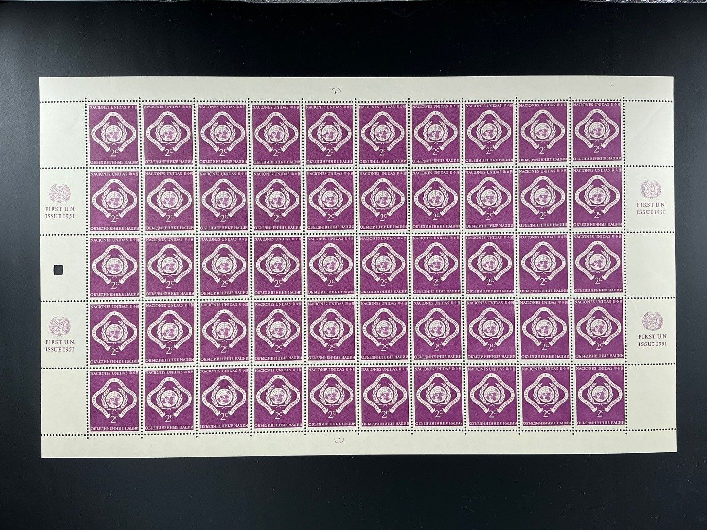 UNO New York 50er Bogen MiNr. 3 postfrisch RZf CO III
