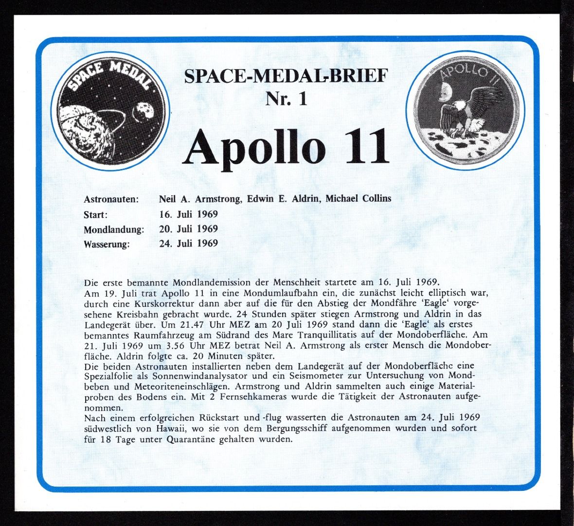 USA Space-Medal Brief #1 Apollo 11