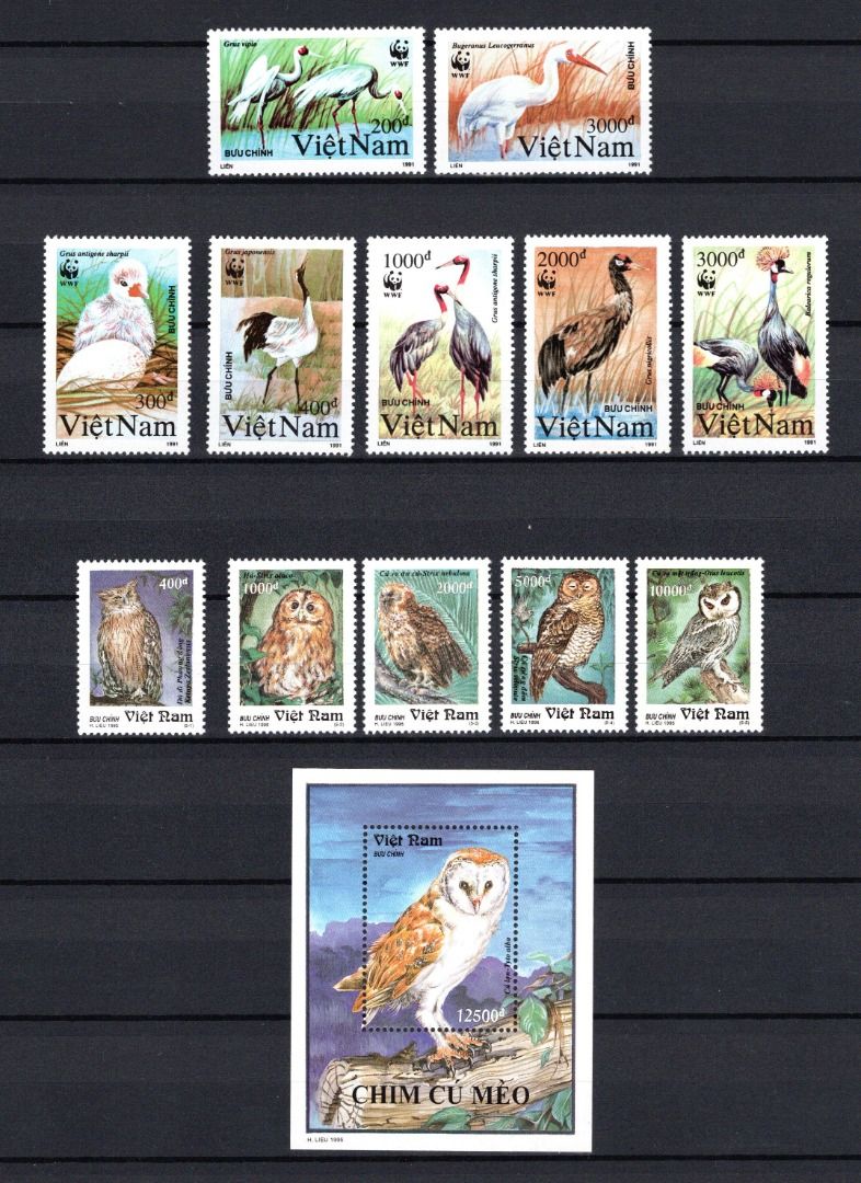 Vietnam WWF MiNr. 2302-2308 + 2667-2671 Kraniche + Eulen postfrisch Tiere
