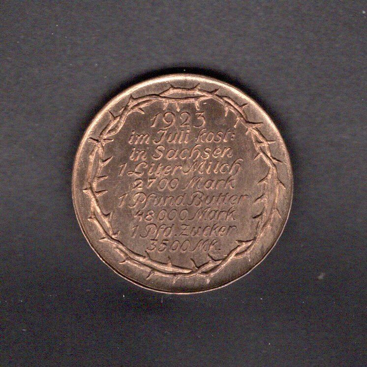 Weimar Medaille 1923 im Juli kost in Sachsen: 1 Liter Milch ....
